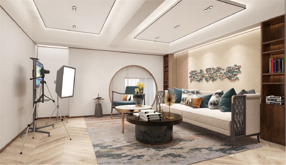 這種風格在空間層次和家具配飾上會更加注重層次感,在需要空間區域劃分或遮擋的時候,就會利用中式屏風、工藝隔斷、簡約博古架等方式進行分隔。使整體空間感覺更加豐富,大而不空、厚而不重,有格調又不顯壓抑。家具的配飾上就會比較線條簡練同時還會使整體空間在濃濃古韻中滲透幾許現代氣息。
