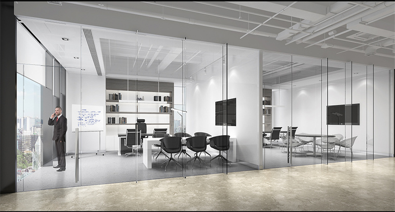 在房間隔斷上可以使用大量的磨砂玻璃隔斷,普通玻璃貼膜等,其次,會議室及辦公室可以采取半開放的格局,區域和區域之間運用木格柵,都能夠起到空間通透性和隱私性。