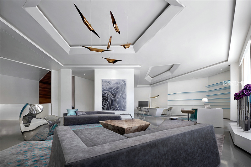 6)Loft風(fēng)格:多由舊廠房或倉庫改建而成,復(fù)式結(jié)構(gòu),可以更好的規(guī)劃不同層次的辦公空間。空間比較開闊,設(shè)計的時候可以隨意改動。設(shè)計時會大量使用玻璃、不銹鋼等材料,不同風(fēng)格材質(zhì)的樓梯、原木裝飾、造型燈、石材、柔性家具等。